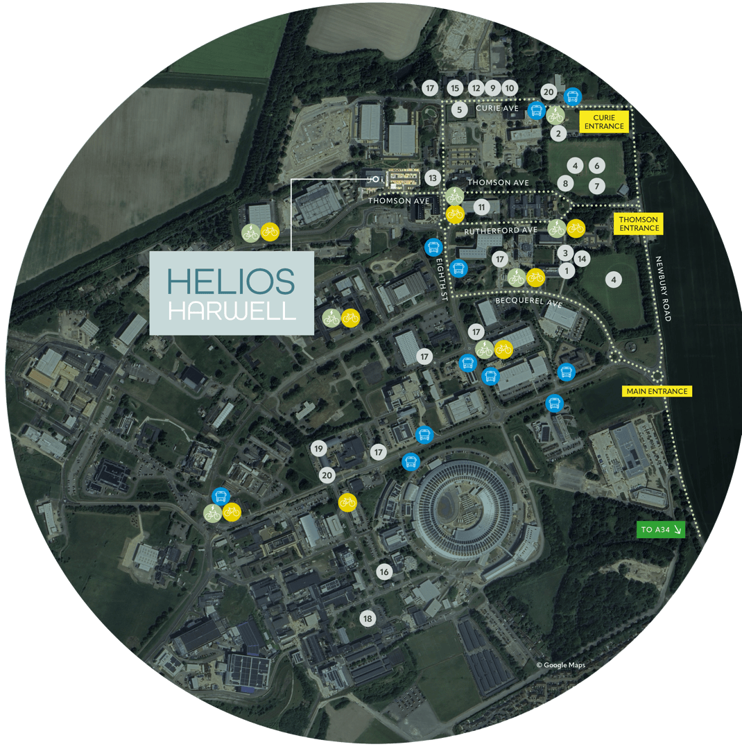 Helios is prominently situated within Harwell Science and Innovation Campus, one of the UK’s leading centres for science, technology and innovation. Located near Didcot, Oxfordshire, the Campus is home to over 200 organisations and more than 7,500 employees working across sectors including space, AI, clean energy, and health tech.