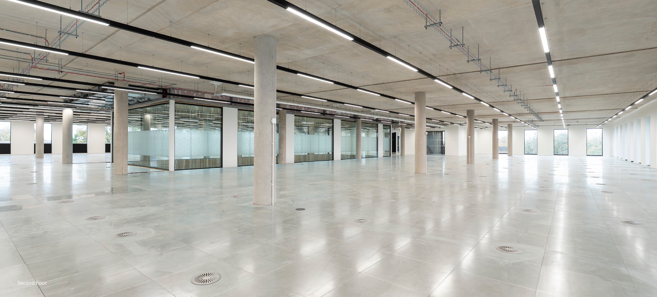 The available accommodation comprises the entire second floor of Helios, a striking, purpose-built office property arranged over ground and two upper floors, centred around a full-height atrium.
