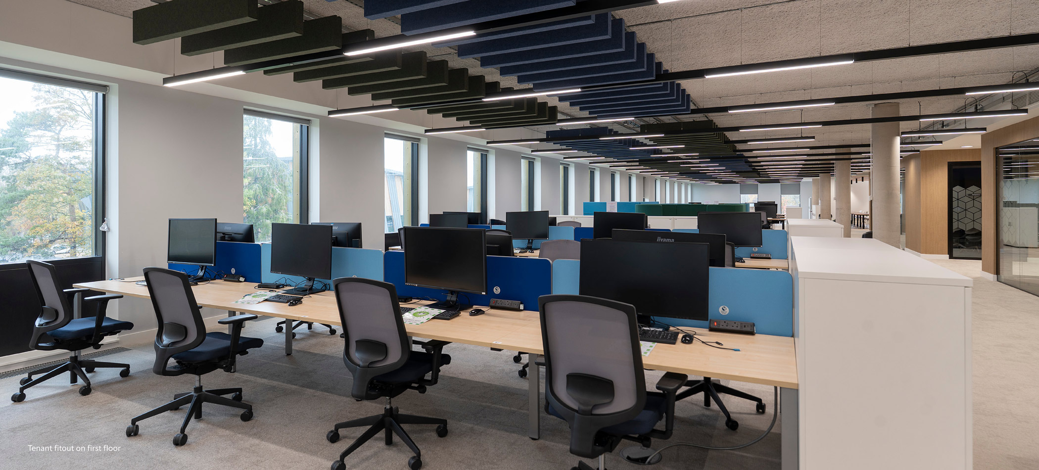 The available accommodation comprises the entire second floor of Helios, a striking, purpose-built office property arranged over ground and two upper floors, centred around a full-height atrium.